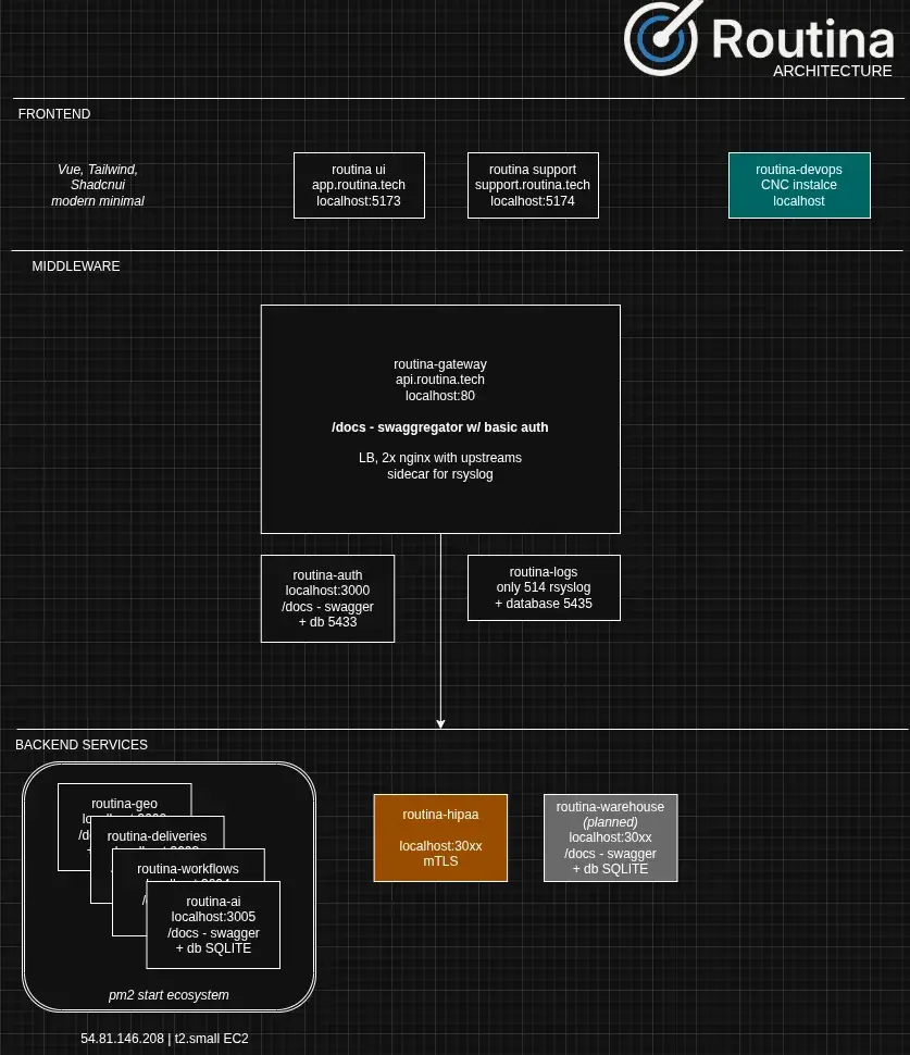 New platform, with a gateway, middleware, and backend microservices. Fastify, node 24